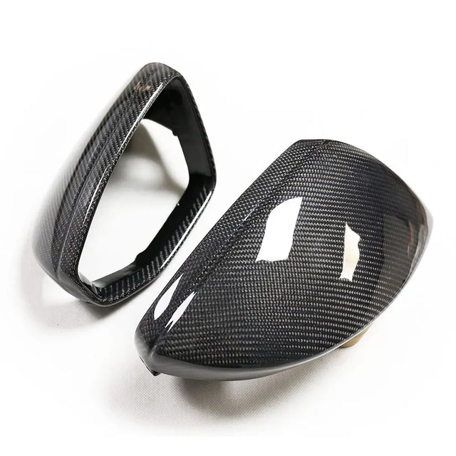 Upgrade your Audi A6's style with these Carbon Fibre Mirror Covers, designed to deliver a sporty and premium look. Crafted from high-quality, lightweight carbon fibre, these covers provide enhanced durability and protection for your mirrors while giving your vehicle an aggressive, race-inspired aesthetic. The sleek, glossy carbon fibre texture seamlessly complements the car's exterior, making it stand out from the crowd.