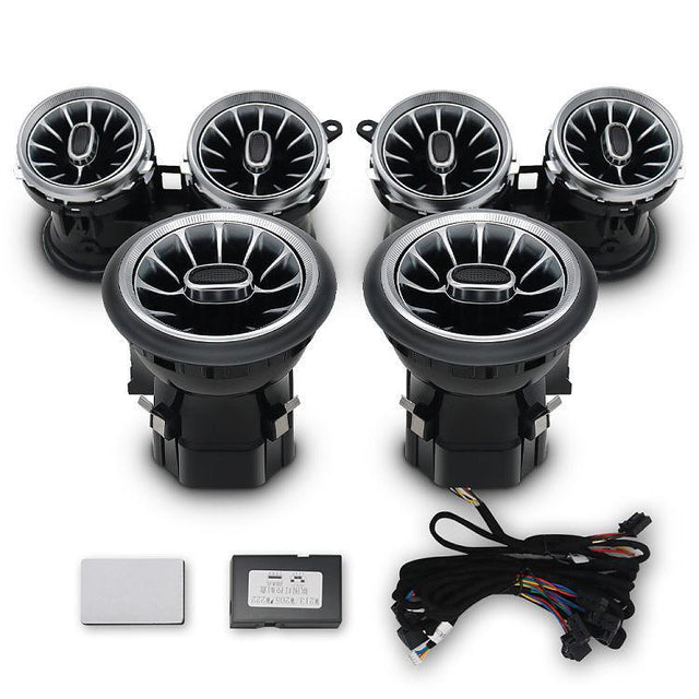 Transform the look and feel of your Mercedes-Benz S-Class W222 interior with these sophisticated turbo-style air vents featuring integrated ambient lighting. Designed to seamlessly blend with your vehicle’s existing interior, these vents add a premium touch, echoing the iconic turbine design seen in luxury vehicles. Crafted for perfect compatibility, they not only enhance your cabin's aesthetics but also improve air circulation.
